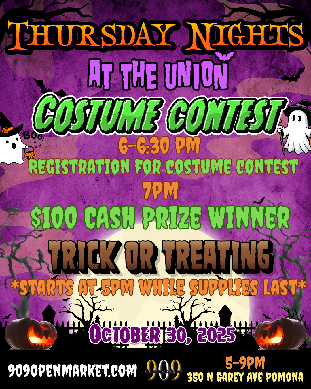 3rd Quarter Food Vendor Application Thursday Nights Thursday Nights at the union September 2025 Thursday Nights at the union October 2025 Thursday Nights at the union November 2025 Thursday Nights at the union December 2025 Thursday Market October Series 〰️ Thursday Market October Series 〰️ Thursday Market October Series 〰️ Get Tickets Here Get Tickets Here Get Tickets Here Get Tickets Here Located in Pomona, California. Every Thursday 350 N Garey AVe Pomona 91766